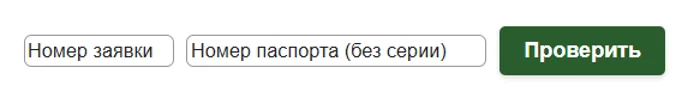 3. После нажатия на кнопку “Проверить”, появится информация по статусу заявки: